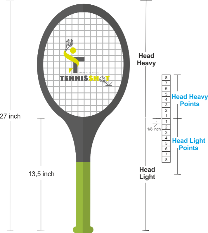 Με δεδομένο ότι το μεγαλύτερο ποσοστό των ρακετών έχουν μήκος 27in / 68,6 εκ, τότε μία ρακέτα με σημείο ισορροπίας 33 εκ είναι μία ρακέτα σε ισορροπία ή όπως λέμε ζυγισμένη.