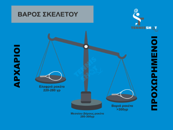 Οι ρακέτες ανάλογα με το βάρος χωρίζονται σε 3 κατηγορίες: